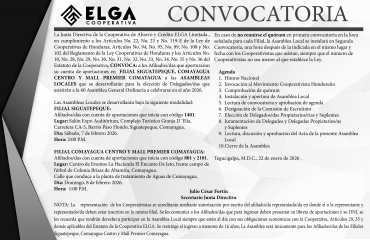 CONVOCATORIA ASAMBLEA FILIALES ALAMEDA, KENNEDY, LOS PROCERES, PLAZA MIRAFLORES Y MALL MULTIPLAZA