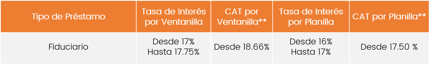 **CAT estimado con base a montos y plazos promedio, según cartera crediticia.